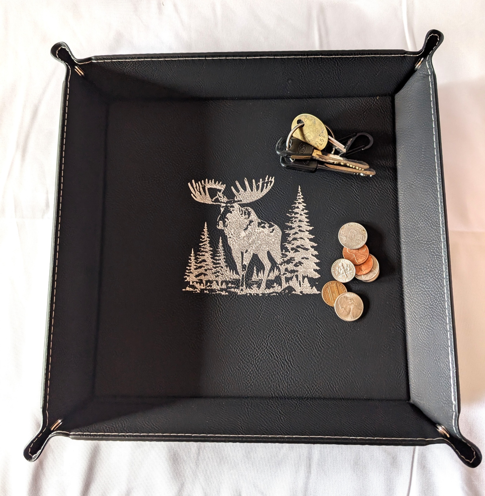 Our personal items collection includes "catch-all" trays in both 9" and 6" sizes, money clips, travel jewelry boxes, and cigar holders.